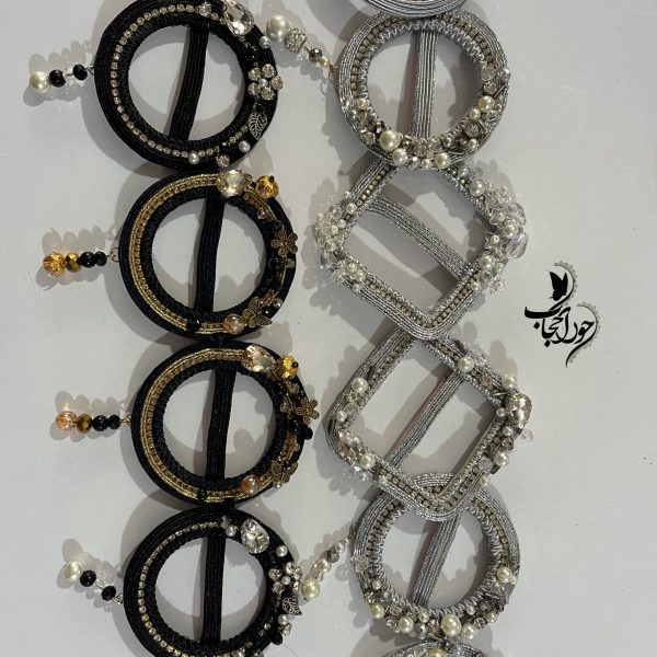 اکسسوری حلقه تزئین شال و روسری جواهردوزی شده در دو شکل مربعی و گرد و سه مدل گرد نقره ای، مربعی نقره ای و گرد مشکی موجود می باشد