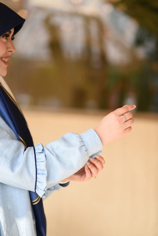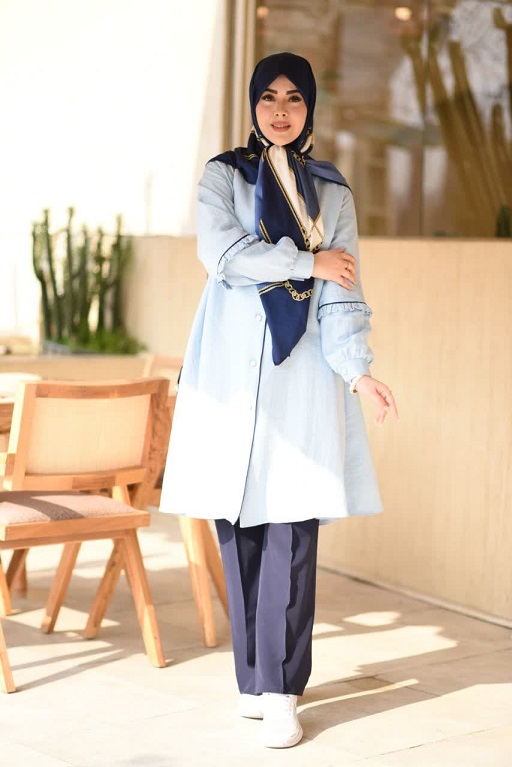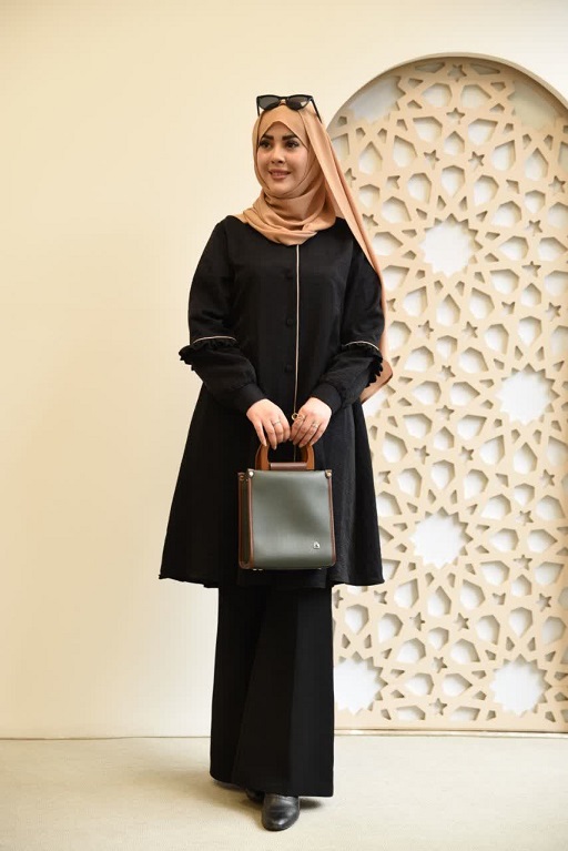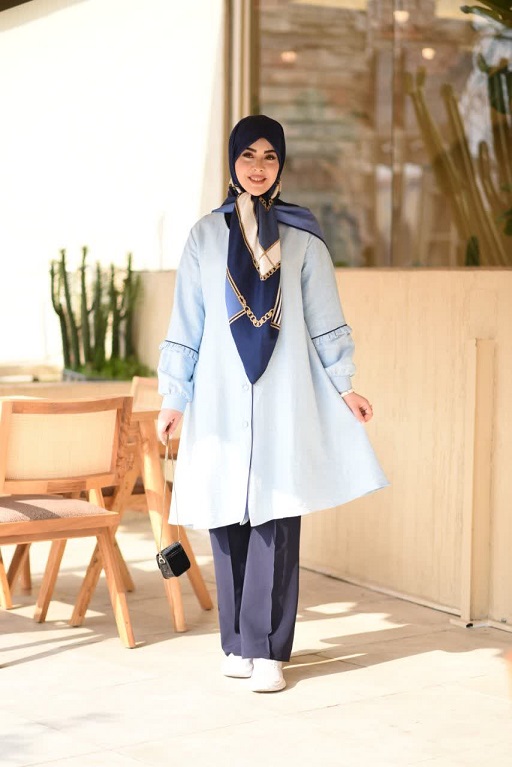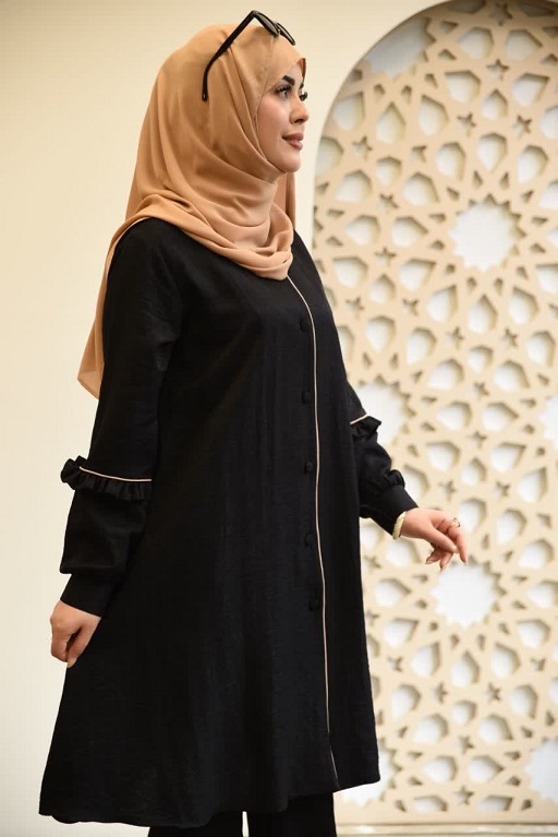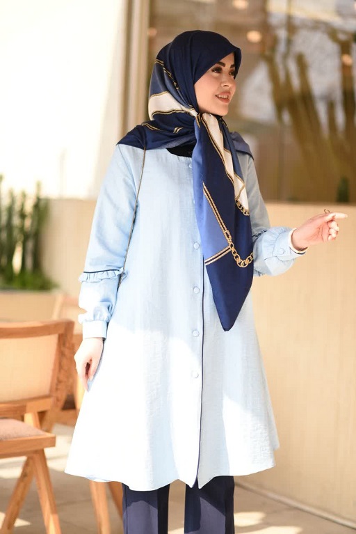 جنس لباس کتان کریستال است و دارای رنگبندی مشکی و آبی آسمانی میباشد.