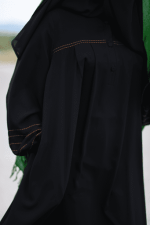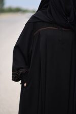 عبا و مانتو زیبای جنت با جنس کرپ نخ اسود عبایی با زیپ مخفی که در پهلوها تعبیه شده و جیبی کاملا پوشیده و ایمن طراحی شده است.