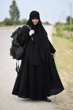 - لباسی کاملا پوشیده و حالت عبایی