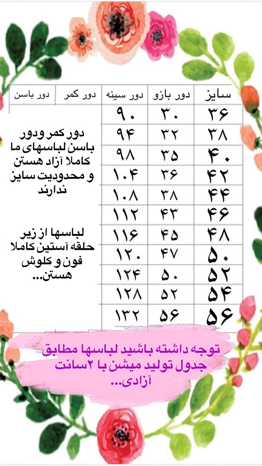 - سایزبندی(۳۸-۴۰-۴۲.....۵۸)